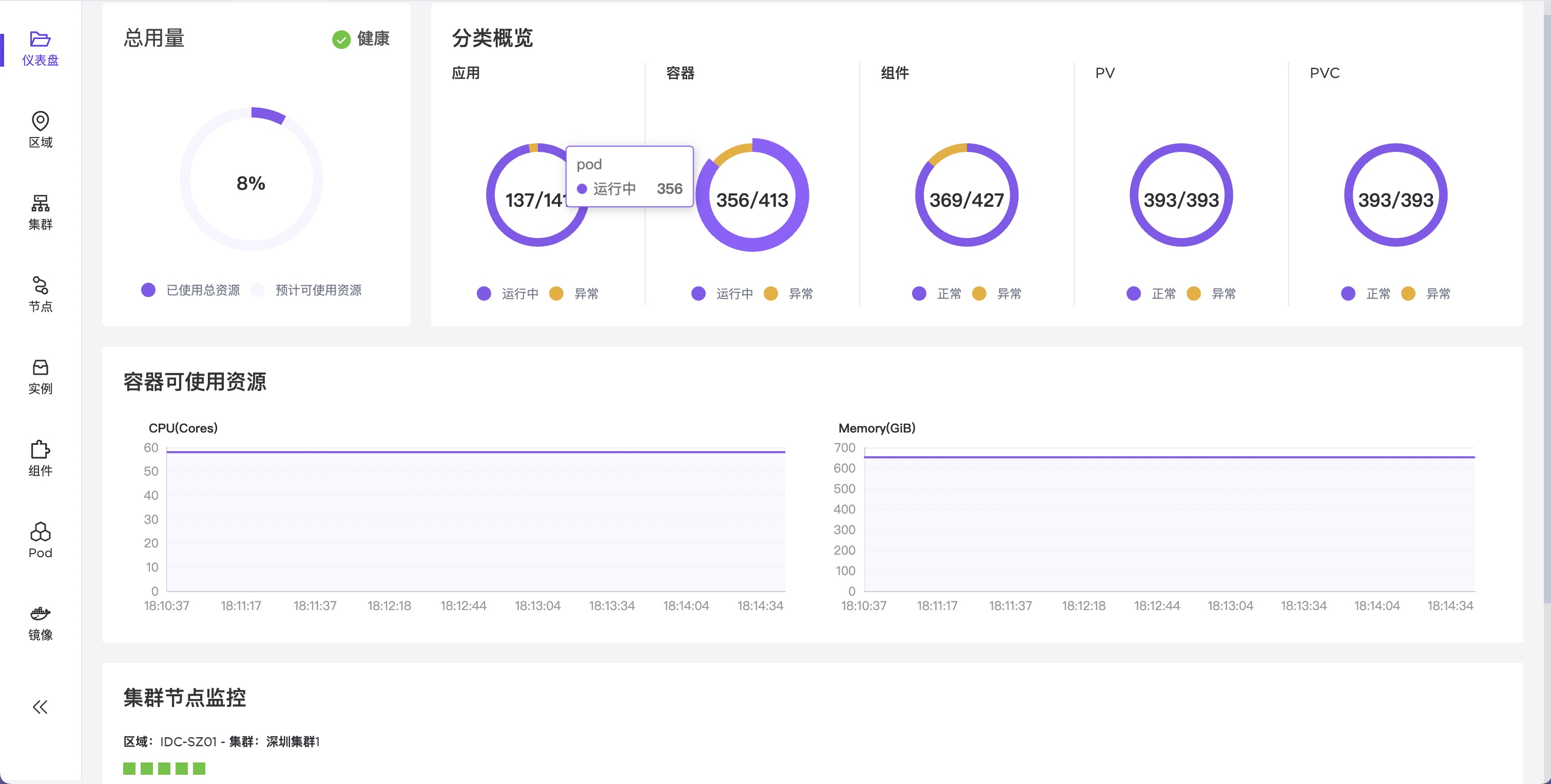 通过单一控制面板实现跨混合云的K8s统一管理,专注于K8s的多云统一管理,无缝对接多套异构环境的K8s集群。