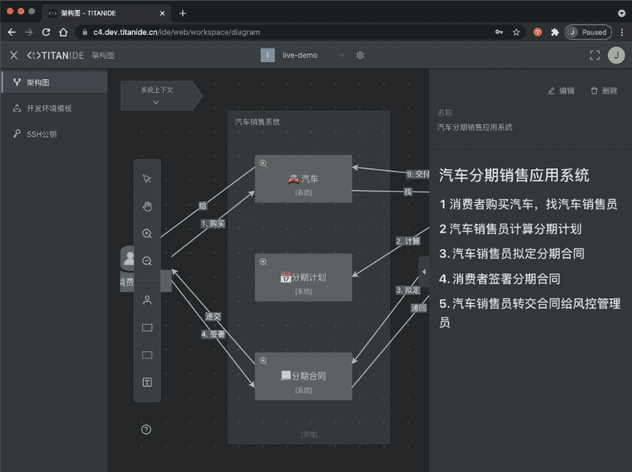 TitanIDE 部署在云端,编码环境与企业云直接打通;