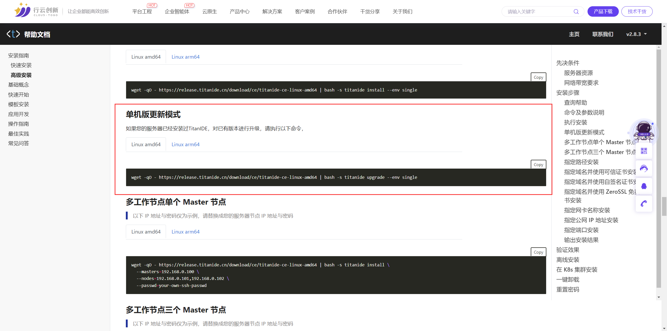 如您之前已经部署 TitanIDE 过往版本,只需一行命令,即可将 TitanIDE 升级到最新版本: